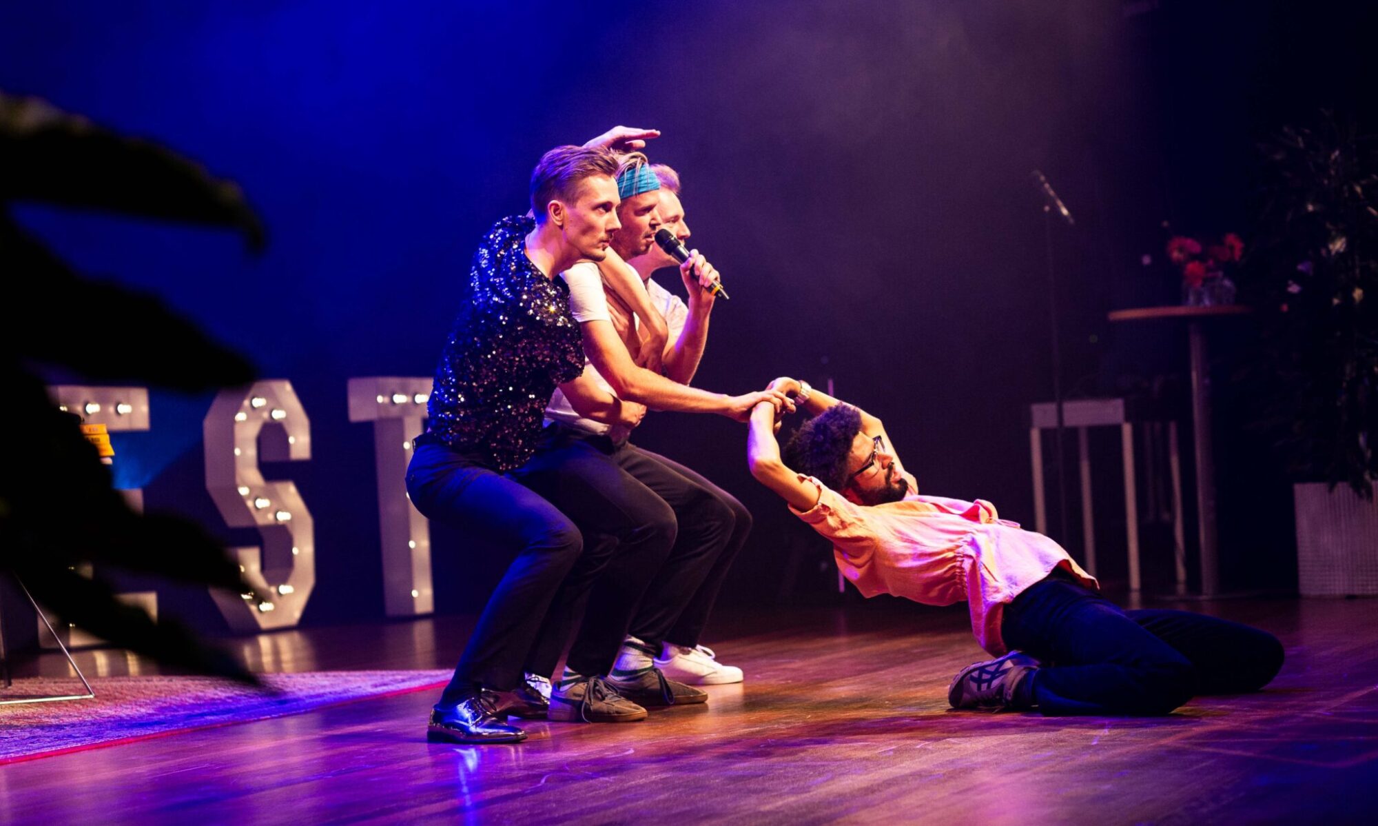 Eindelijk! Dichters die poëzie voordragen en tegelijkertijd kushandjes de zaal in slingeren! Sinds hun debuutvoorstelling ‘De Adriaan van Discotheek’ zet De Literaire Boyband podia door het hele land op de kop, met literatuur als popconcert. In een show vol meezingbare refreinen en zwoele blikken klinkt op de achtergrond de constante dreiging van botsende ego’s.
